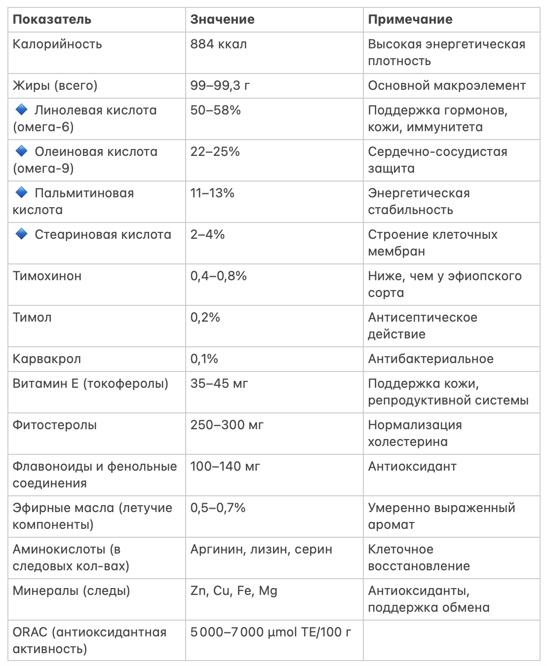 🔬 БИОХИМИЧЕСКИЙ СОСТАВ (на 100 г масла):